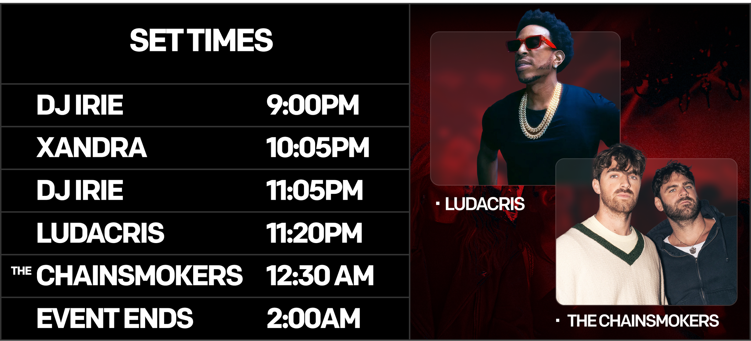 Join us Saturday, February 7th, for the Big Game Weekend’s hottest event - featuring The Chainsmokers, Ludacris, DJ IRIE, Xandra, and more. Every year SI The Party is joined by the hottest names in sports, entertainment, and music.